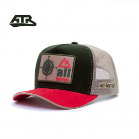 Boné All Terrain Compass Verde com Bege e Aba Vermelha