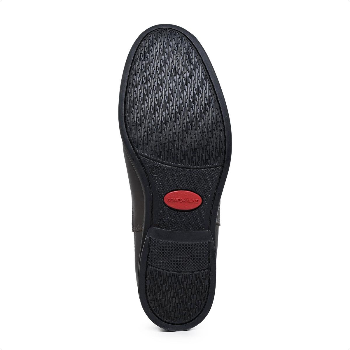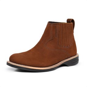 Fabricado em couro bovino legítimo, totalmente entretelado e forrado em couro legítimo, biqueira e contra forte termo conformado que mantem o alinhamento original do calçado. O solado é costurado e fabricado em Borracha, trazendo leveza, conforto, impermeabilização e durabilidade.